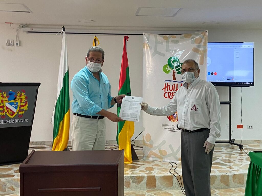 En las instalaciones de la Gobernación del Huila se llevó a cabo la firma del convenio con el Comité de Cafeteros del Huila, que permitirá salvaguardar la cosecha cafetera que se avecina en el norte y sur occidente del departamento.