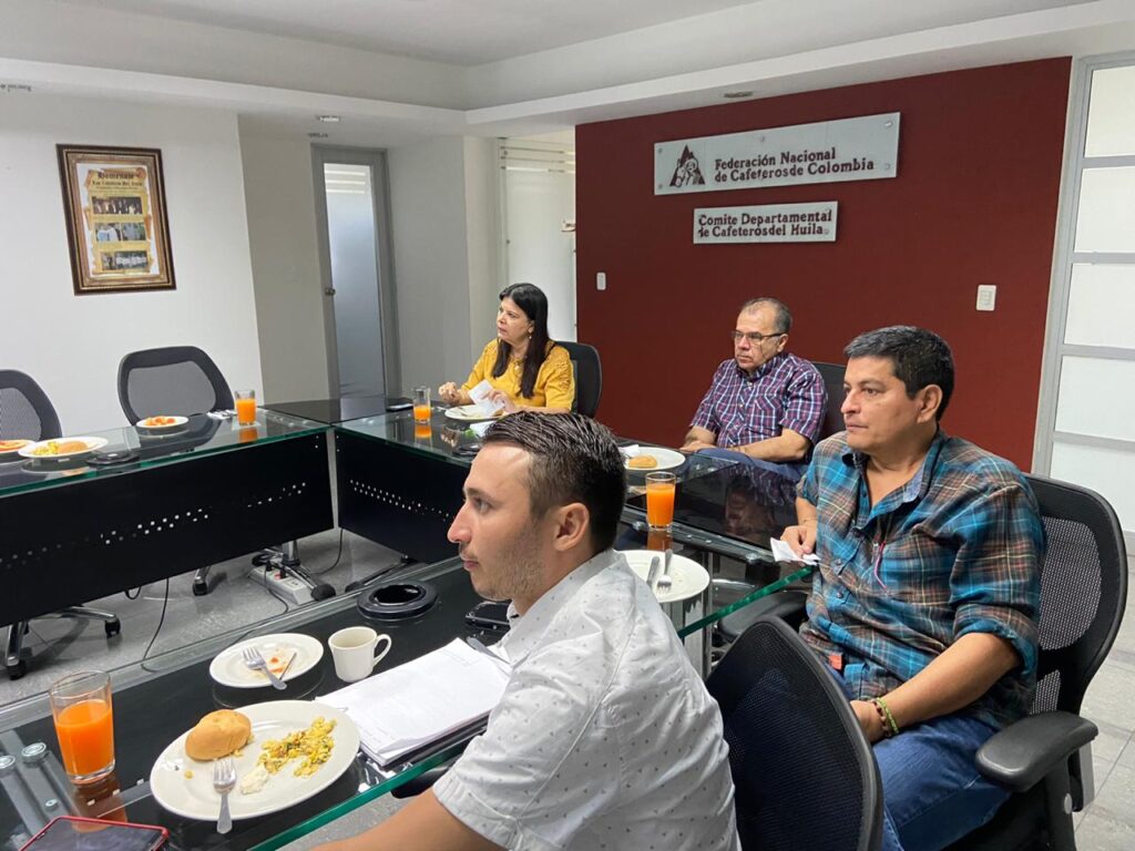 En las instalaciones del Comité de Cafeteros del Huila, la representante a la Cámara por el Huila, Flora Perdomo Andrade, el secretario de agricultura del departamento, Dilberto Trujillo Dussan, el secretario de cultura y turismo Daniel Sanz Perdomo y el Director Ejecutivo del Comité de Cafeteros, Dr. Jorge Enrique Montenegro Polanía sostuvieron una importante reunión para tratar temas referentes a la caficultura del departamento.